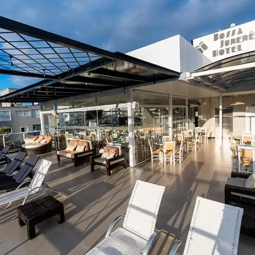 Este hotel cuenta con una ubicación privilegiada, a solo dos cuadras de la playa de Jurerê y muy cerca de Jurerê Internacional, con fácil acceso a otras playas icónicas de Florianópolis como Praia do Forte, Canasvieiras, Canajurê, Praia Brava e Ingleses. Además, está rodeado de todo tipo de servicios como supermercados, restaurantes, bares, farmacias y cajeros automáticos.