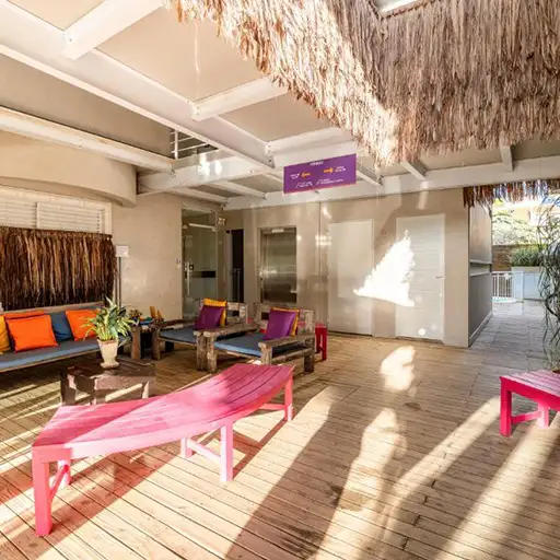 Además, el hotel dispone de una acogedora área social con piscina, bañera de hidromasaje, reposeras y sombrillas, perfecta para relajarse y disfrutar del aire libre. Uno de los grandes diferenciales es su delicioso desayuno buffet, variado y con opciones para todos los gustos, que se sirve en el rooftop, un espacio moderno y climatizado, con mesas en el interior o al aire libre, para comenzar el día con una experiencia especial y una vista encantadora.